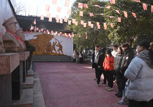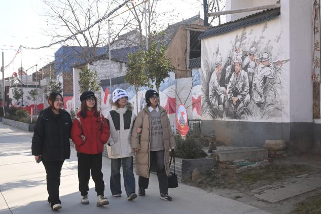 郭何村位于扶眉战役纪念馆所在地,近年来,已建设成为“党旗红、生态优、产业强、农民富、乡风好”的红色美丽乡村,是全国爱国主义教育示范基地之一。同学们在郭河村开展学习实践工作,探访红色征地,追寻英雄事迹,感悟先辈精神,学习郭河村将红色文化资源融入乡村振兴的新路径,深切感受当地乡村文明新气象。