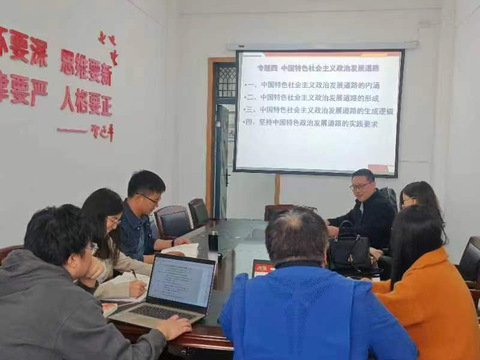 宋鑫华老师以“中国特色社会主义政治发展道路”为主题进行了示范课教学,在示范课中,宋老师分别从中国特色社会主义政治发展道路的内涵、形成发展、生成逻辑、实践要求对这一主题的具体内容作了深入的阐述和解读,对课程教学安排做出了详细说明。万金鹏、孙百亮、亓红帅等老师分别围绕教材内容处理、教学方法、师生互动、重点难点以及热点问题等内容谈了自己的看法。
