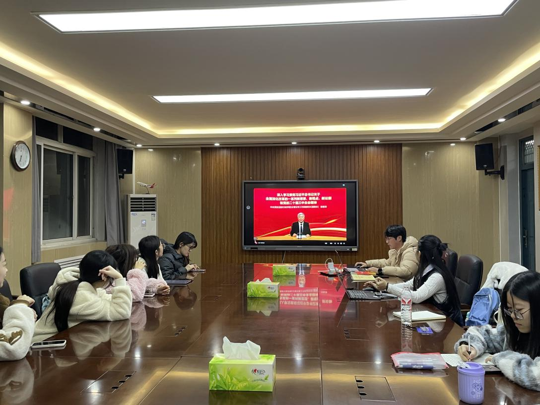 为深入学习贯彻党的二十届三中全会精神,进一步夯实支部党员理论基础、提升党性修养,11月21日晚,马克思主义理论研究生第二党支部在学院基础楼510会议室举办党的二十届三中全会精神专题学习交流会。会议由党支部书记刘洁明同志主持,支部全体成员参加会议。