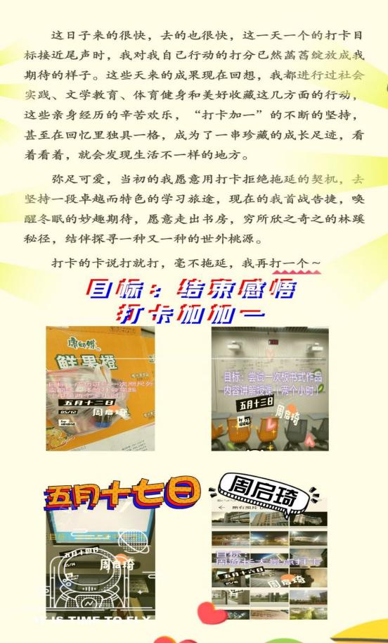 本次活动以“拒绝拖延症”为主题,旨在带领在校同学主动战胜拖延症带来的行动延缓和思维困惑,使同学们能够更好珍惜时间,学会规划,拒绝拖延。来自各个学院的近60名同学在一周时间里,每日发布个人当日学习和工作计划,并在当晚将完成情况和支撑材料在活动群内进行展示。参赛同学们在相互对比之中坚持完成每日计划,并不断提升计划难度,为拒绝拖延付出努力,最终参加活动的全部同学均完成了每日计划,并分享了参加活动的心得与感悟。