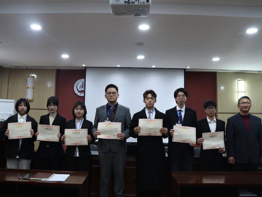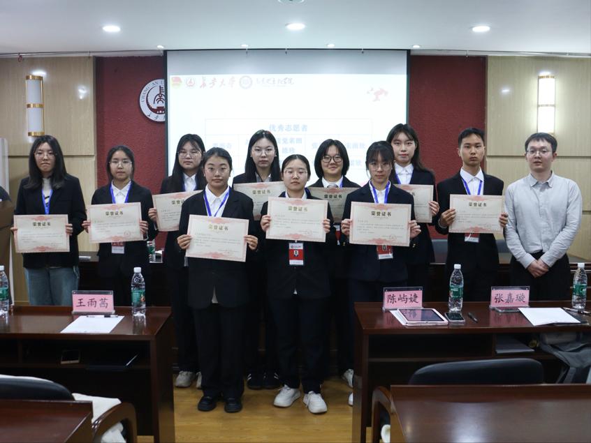 冯迪为第七届团学组织优秀部门负责人颁发证书,秦丰为第七届团学组织优秀志愿者颁发证书,并合影留念。