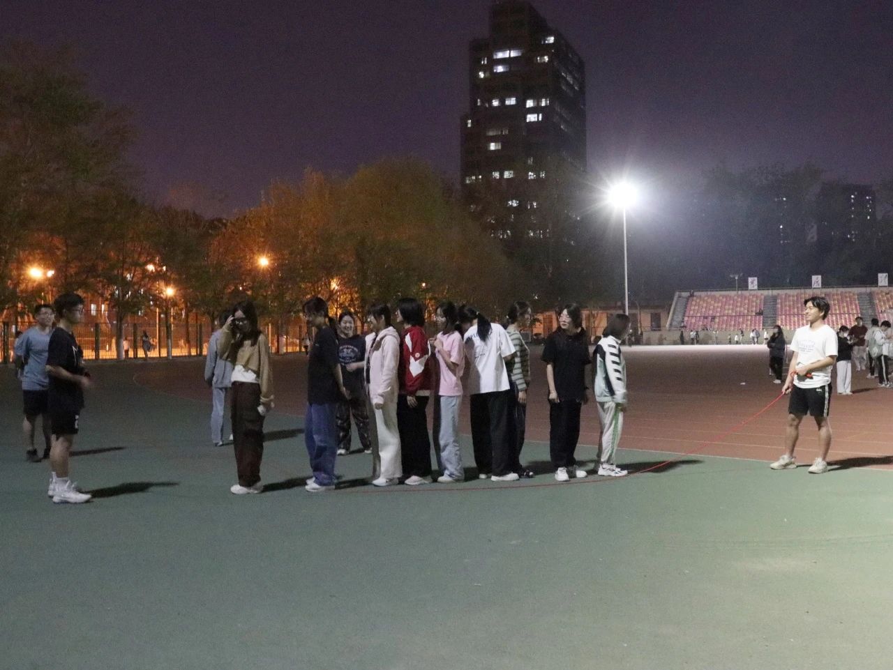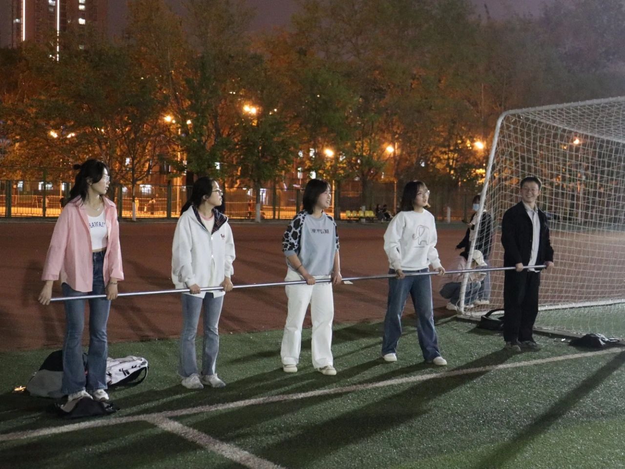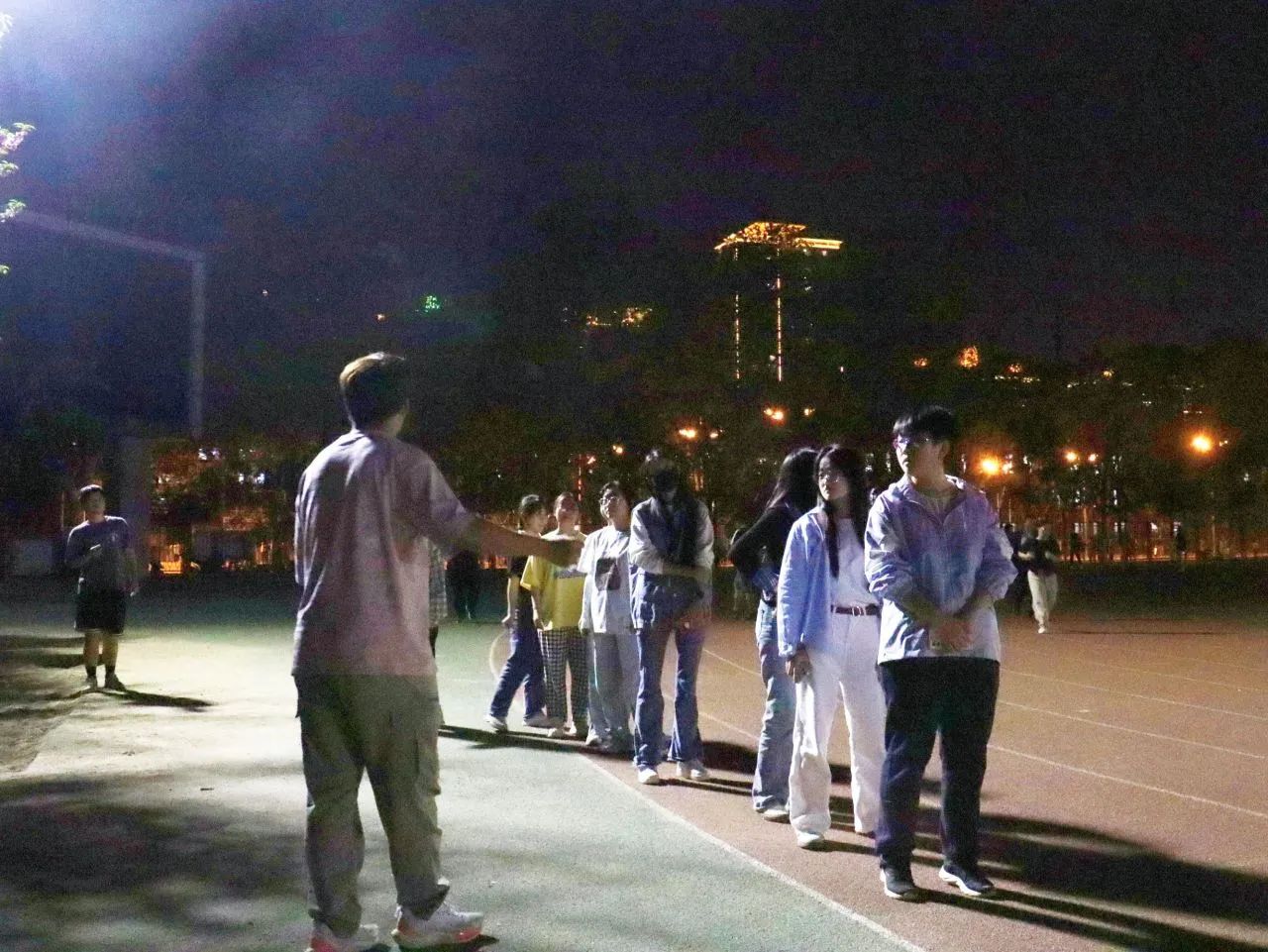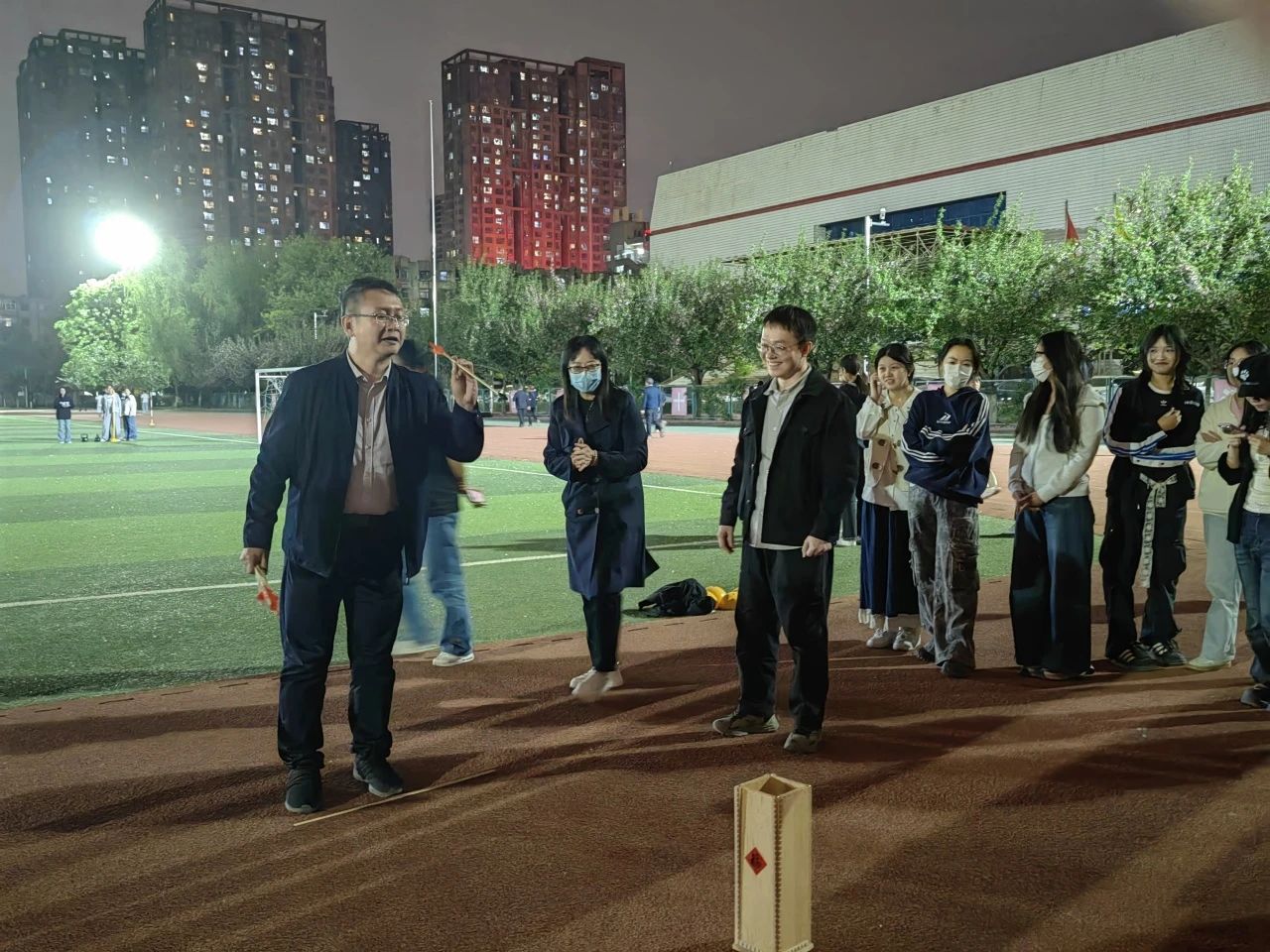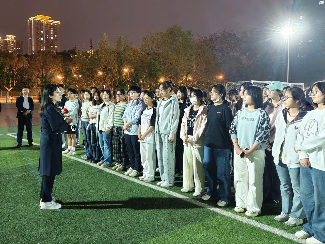 4月11日晚,院党委书记李小芹、院党委副书记冯迪、学办副主任兼团委书记秦丰,辅导员刘堃、张子婧前往校运动会训练场地,慰问运动员和工作人员。