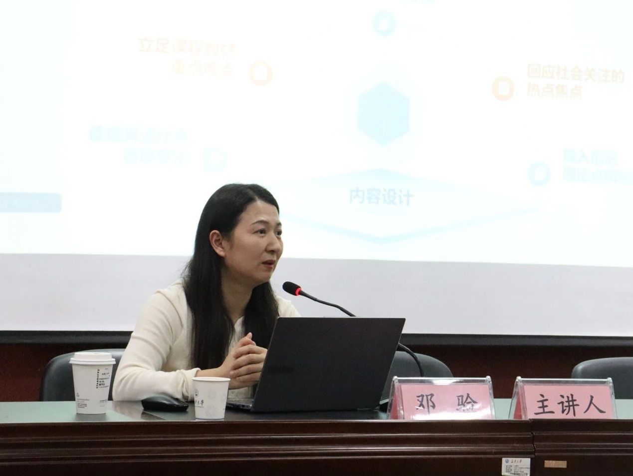 邓验教授从选题策划、文稿撰写和讲稿打磨出发,通过获奖案例展示与精准解析相结合的方式,针对大学生讲思政课的常见问题进行专业指导。邓验指出,思政课选题既要聚焦时政热点和理论前沿,也要善于挖掘本校特色和地方资源,坚持以专业为桥、以足迹为笔、以创意为媒。邓验教授总结概括了主题聚焦铸高度,问题导向定精度,内容设计挖深度,知识衔接强粘度,话语表达传温度等多条经验,通过提供详尽的修改建议,帮助学生完善教学内容、激发创新思维、增强创新能力。