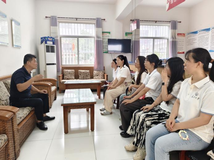 实践队抵达栗峪口村后,前往党群服务中心,与党支部书记王利军进行了长达两小时的深入访谈。王利军书记详细介绍了栗峪口村从合并贫困村到省级乡村示范村的转变过程,分享了集体经济组织带动新老村民共同富裕的成功经验。从墙上画报的“可视化”表达到业态焕新的产业蝶变,从集体经济组织实现的新老村民共富到栗峪口村成功的发展理念,村书记的介绍让队员们深刻感受到了乡村振兴的生动实践。王书记表示,随着越来越多的返乡青年投身创业,栗峪口村的集体引领、新老共富之路将越走越宽。