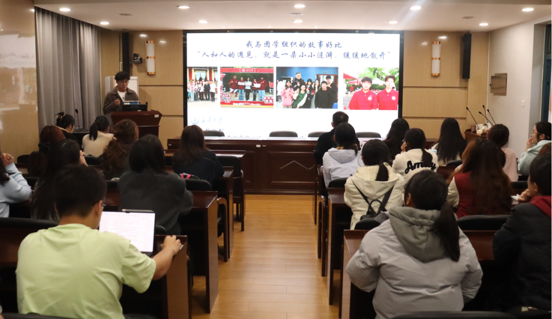 张汶鸿结合自身在理论宣讲和科创竞赛方面的经历,指出阅读是筑牢思想根基的关键所在,理论宣讲是提升表达能力的重要途径。张汶鸿鼓励新生们积极参与各类活动,在知行合一中不断积累经验、增长才干,为实现全面发展打下坚实基础。