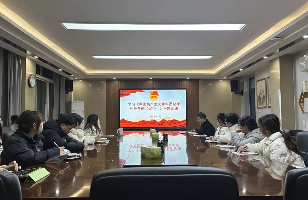 本次团课围绕《中国共产主义青年团纪律处分条例(试行)》(以下简称《条例》)展开。秦丰从学习领会《条例》的重要意义、违纪处分的主要内容和案例分析三个方面展开系统讲解,重点对《条例》中各条款进行细致的解读和分析。讲解过程中,与会人员一同观看纪录片《巡视利剑》,进一步引导青年团员严守红线底线,坚持以身作则,筑牢思想防线。