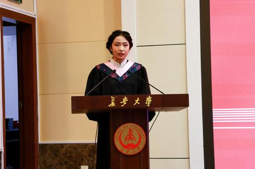 本科毕业生代表温婉分享了自己在学院的学习经历和成长感悟,诉说着对学校、学院、老师以及家人由衷的感谢,期待同学们能活出最精彩的自己!研究生毕业生代表田雨潼回顾了研途三年的学习、生活历程,心怀对母校的眷恋和对未来的期许,代表毕业生庄严许诺:牢记学院老师们的教诲,不忘初心、砥砺前行。在校生代表郭泽毅向即将毕业的学长学姐们表达了诚挚的感谢和衷心的祝福,表示将沿着学长学姐们的足迹向更高点迈进,继续为长大马院增光添彩。