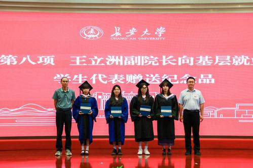 副院长王立洲、院党委副书记冯迪向基层就业学生代表赠送纪念品。