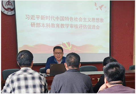 3月27日,思想道德与法治教研部召开集体会议,传达学院关于本科教育教学自评自建工作布置会的具体要求,并且安排布置了本教研室本科评估自评自建工作。首先,李华老师传达了学院在前一天召开的相关工作布置会的具体内容。随后,各位老师就本教研室接下来要在自评自建中需要完成的工作进行了讨论。大家一致认为要继续坚持做好集体备课,把提升教学质量作为核心工作。