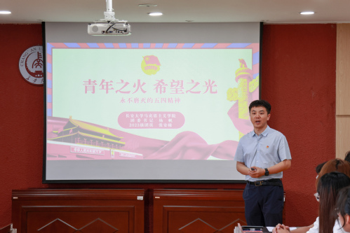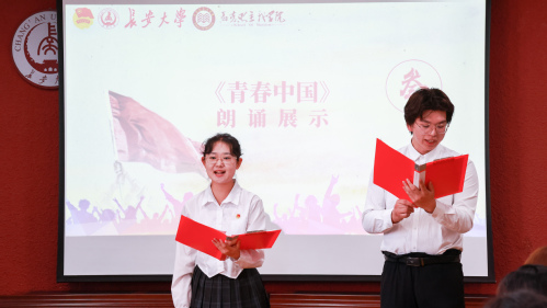 团支部书记王广灿做团日活动介绍并对五四运动的历史脉络进行梳理。在《青春中国》朗诵展示环节中,支部成员赵楚涵、杨金林用铿锵有力的话语带领观众回首五四运动以来一代代青年人与祖国共同成长的伟大征程,展开了一幅波澜壮阔的时代画卷,声声朗诵奔涌出壮美诗篇,刻画出向上向前的长大青年群像。