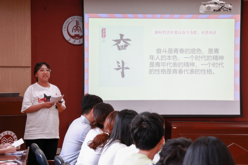 学院团委书记杨帆和支部成员张安绮带来师生同台共讲微团课。杨帆以独特的视角通过三封书信展示不同历史时期中国青年永恒不变的爱国精神。张安绮结合自身感悟,指出新时代青年要以奋斗为桨、以创新为刃、以信仰为炬,在激情奋斗中书写新的时代辉煌。团课最后,杨帆带领全体成员重温习近平总书记对广大青年的殷切寄语,号召同学们要学习寄语精神,以满腔热血肩负时代使命,在以中国式现代化推进中华民族伟大复兴的征途中,挺膺担当,勇创辉煌!