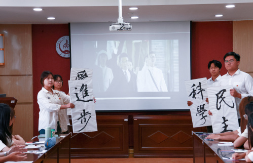 团日活动在精彩的“举五四火炬,争时代先锋”主题影视作品配音演绎中拉开帷幕,支部成员马亚宁、虎雪洁、吴明翰、孔思尧通过细致入微的剧情表演将全体参会人员的思绪带回那段峥嵘岁月中的史海钩沉,带领同学们近距离感受五四精神。