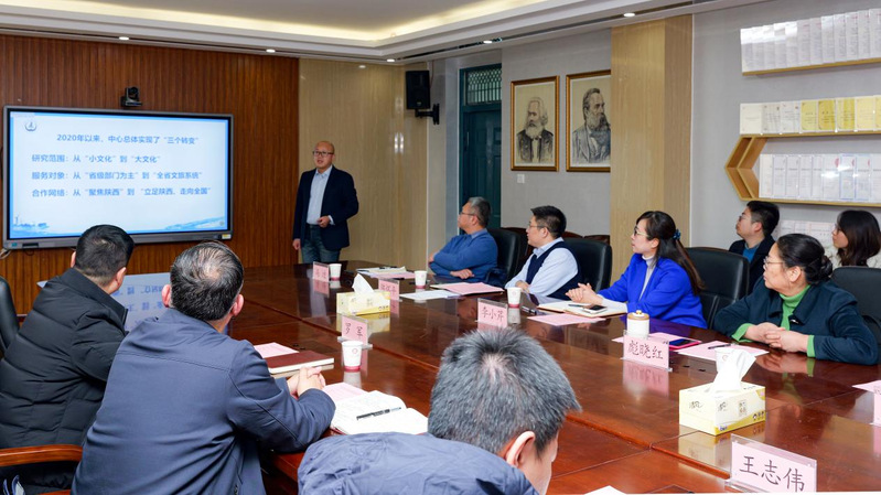 2023年12月15日,陕西省委宣传部理论处处长、省哲学社会科学工作办公室主任高宝荣一行3人莅临Taptap点点(188改名)调研指导重点马院建设与哲学社会科学重点研究基地建设情况,校党委副书记、副校长彪晓红、科研院副院长兼社科中心主任赵敬源、社科中心副主任石赟琦出席座谈会。Taptap点点(188改名)领导班子、哲学社会科学重点研究基地负责人、教师代表参加座谈会,会议由赵敬源主持。