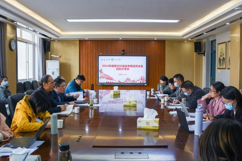 陈怀平通报了学院独立运行以来国家社科基金和教育部人文社科项目的立项情况,总结分析了历年来国家社科基金的申报经验和存在问题。陈怀平从申报工作安排、各阶段任务、时间节点、具体要求等方面对学院2024年国家社科基金申报工作进行了全面的部署和安排。陈怀平强调,各位老师一定要振奋信心、鼓足干劲、提早准备、主动谋划,多向同事、专家学习交流,紧跟学校、学院的申报节奏,及时按照专家给出的论证意见对申报书进行修改、完善、打磨、提升,争取在明年的项目申报中取得新的突破。学院也将继续加大对国家社科基金申报的支持力度,多措并举做好2024年国家社科基金申报的组织和服务工作。