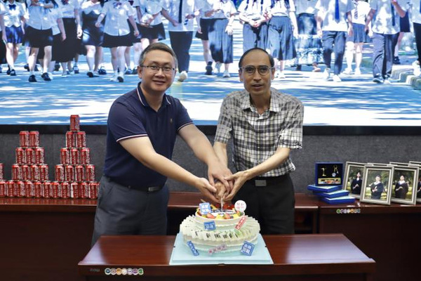 副院长王立洲、院党委副书记冯迪为同学们分切蛋糕。