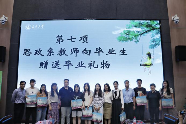 各位老师对毕业生们深情寄语,向大家顺利完成学业表示祝贺,希望同学们未来无论从事何种职业,都要不断追求进步,让坚持学习成为一种生活方式;要不断求知明辨,让观察思考成为相伴终生的良好习惯,要始终保持对生活、对事业、对社会、对国家的热爱,永远做心怀阳光、乐观进取的人,期待全体毕业生常回家看看。思政系教师代表、毕业班班主任殷峰将四年校园生活的点点滴滴浓缩在一段亲自剪辑的视频之中,视频里的每分每秒都镌刻着同学们的青春模样和记忆,再现了与同学们朝夕相处的四年美好时光。殷峰希望同学们在未来的新征程中要常心怀母校、常念马院,带着新的目标继续奋力前行。