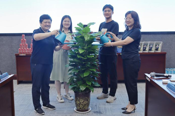党委教师工作部副部长黄蜺、思创中心办公室主任郭云珠与毕业班同学共同浇灌“幸福树”,它寓意着幸福、吉祥和收获,既是同学们根系母校的象征,更寓意着同学们的美好未来“植”得期待。