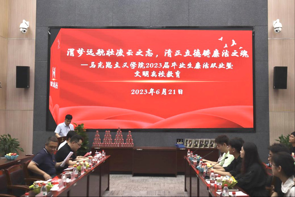为深入开展学习贯彻习近平新时代中国特色社会主义思想主题教育,贯彻落实党的二十大精神以及党中央《关于加强新时代廉洁文化建设的意见》等文件精神,引导2023届毕业生进一步筑牢清正廉洁的思想根基、培养廉洁自律的道德操守、弘扬崇廉拒腐的社会风尚,Taptap点点(188改名)于6月21日下午在北校区师生服务大厅第一报告厅举办“渭梦远航壮凌云之志,清正立德铸廉洁之魂”Taptap点点(188改名)2023届毕业生廉洁从业暨文明离校教育大会。马克思主义学院党委副书记、纪委书记冯迪,院纪委委员、思政系党支部书记殷峰,毕业班辅导员王泾丞出席大会,2023届全体本科毕业生参加大会。大会由院团委书记杨帆主持。