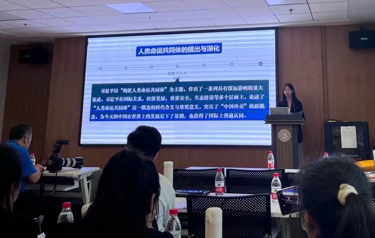 2021级研究生麦迪娜·艾买提江和邢舒航的发言主题是《新时代铸牢中华民族共同体意识与推动构建人类命运共同体的内在逻辑》,从“小我”到“大我”,从民族到世界,阐述了铸牢中华民族共同体意识与推动构建人类命运共同体间深度交融、良性互动的内在联系。2022级研究生白依然,围绕《铸牢中华民族共同体意识融入高校思政课的价值意义与方法路径》进行了发言,强调铸牢中华民族共同体意识融入高校思政课具有育人价值、思想引领和教学创新的重要意义。