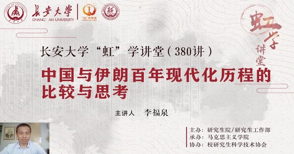 2022年6月6日,西北大学中东研究所副所长李福泉教授应邀来我院作“中国与伊朗百年现代化历程的比较与思考”专题学术报告。我院及相关学院共380余名师生,以线上形式参加了此次学术报告。