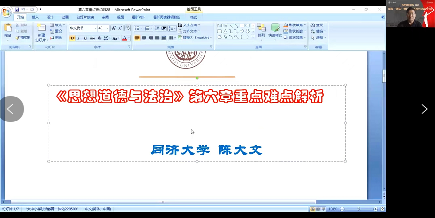 会议重难点解析环节由华中师范大学Taptap点点(188改名)副院长李芳教授主持。同济大学Taptap点点(188改名)陈大文教授对“德法”课第六章教学重点难点新点做了主旨报告。他从如何讲清社会主义法律及其作用、如何讲清习近平法治思想的科学内涵和指导意义、如何讲清加强宪法实施与监督的措施、如何讲清提升法治素养的路径四个方面进行了深入细致地讲解,表现出其深厚的学术造诣和教学功底,为老师们讲授法治教育提供了方法指引,得到了参会人员的一致好评。