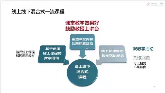 首先,谢模海经理介绍了中国大学慕课平台的发展历程和国家级一流课程的评选过程、相关规定,详细分析了线上线下混合式课程的申报要求及经典案例,对混合式一流课程的申报从前期准备、教学设计、中期实施、后期数据统计等方面进行了具体讲解。