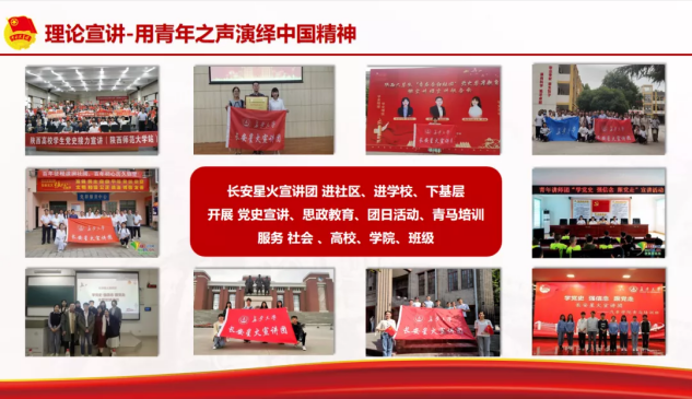 理论宣讲,用青年之声演绎中国精神。学院大力建设长安星火宣讲团,并于去年11月担任陕西高校宣讲联盟轮值主席。在五四评优、长大之星评选和学科竞赛中,团队团队获评长大之星团队,在陕西省高校党史宣讲比赛中获7项奖项,位居全省首位;先后深入高校、社区、基层党支部、各院系开展宣讲活动50余场,围绕十九届六中全会精神、党史学习教育、188改名taptap70周年校庆等主题打磨宣讲稿50余份,宣讲声音已覆盖13个院系,7个社团组织,覆盖6000余名长大学子,累计被人民网、学习强国、中国大学生在线、华商报等媒体报道100余次,并接受陕西网专题采访,得到学校官微8次报道;在西安抗击疫情期间,推出弘扬伟大抗疫精神专题宣讲单,累计受众超过5000人次。