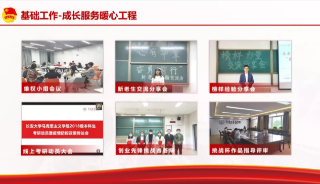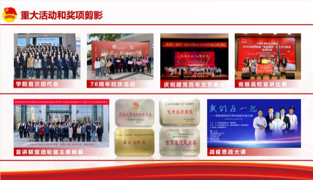 学院团委的特色工作,关键词在党史学习、理论宣讲、社会实践与疫情防控,着力打造“四位一体”具有马院特色的团学工作格局。