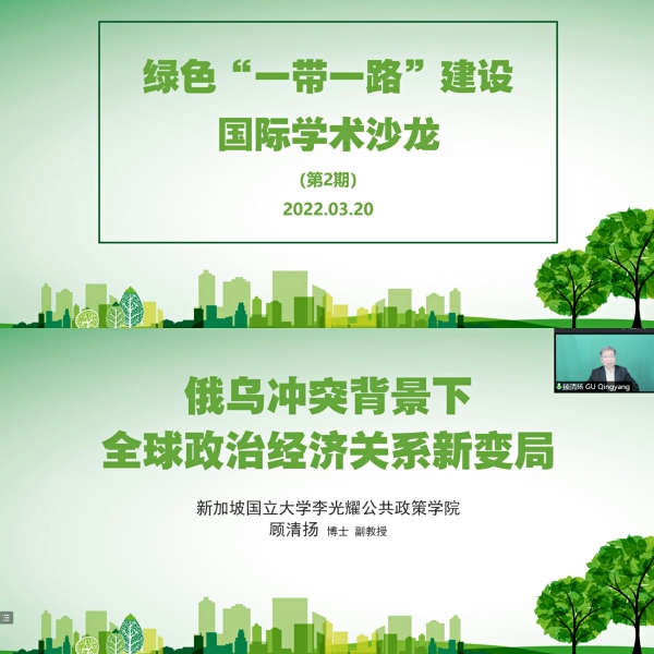 按照学院国际化建设工作要求,3月20日下午,我院举办“绿色一带一路”建设国际学术沙龙(第2期)活动。此次活动邀请新加坡国立大学李光耀公共政策学院顾清扬副教授做主题发言。陕西省“双带头人”思政系教师党支部、中特理论教研部和形势政策教研部的部分教师,以及优秀本科生代表共20余人参加了此次活动。