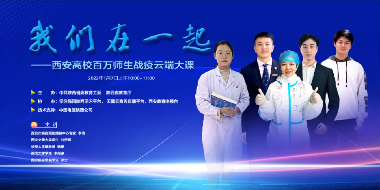 为进一步凝聚高校师生力量,坚定战疫必胜的信心,1月7日上午,陕西省委教育工委、陕西省教育厅为老师和同学们精心组织一堂“我们在一起 ——西安高校百万师生战疫云端大课”。我院团委书记杨帆作为全省辅导员代表讲述了辅导员队伍召之即来、来则能战的动人故事,学校3万余名师生通过直播平台线上观看。