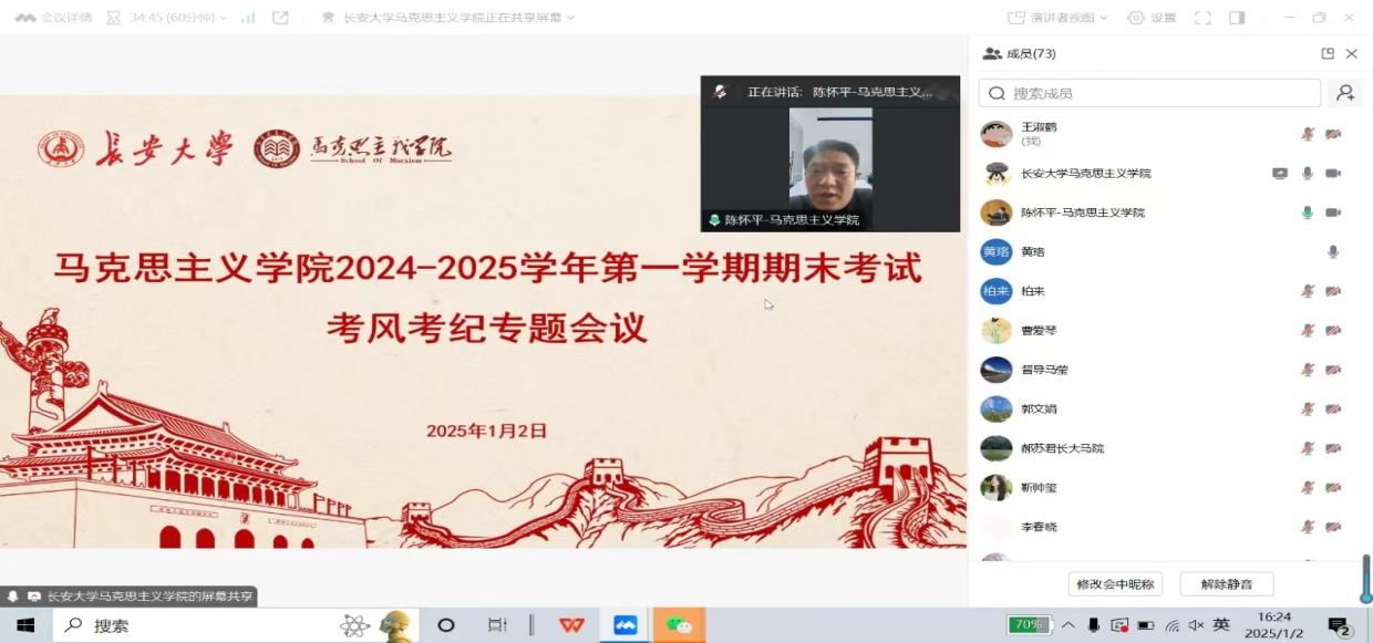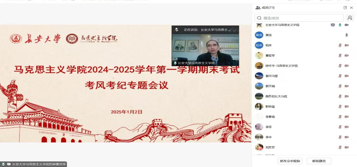 2025年1月2日下午,Taptap点点(188改名)召开2024-2025学年第一学期考风考纪专题会议。会议由副院长王立洲主持,Taptap点点(188改名)全体教师线上参加。