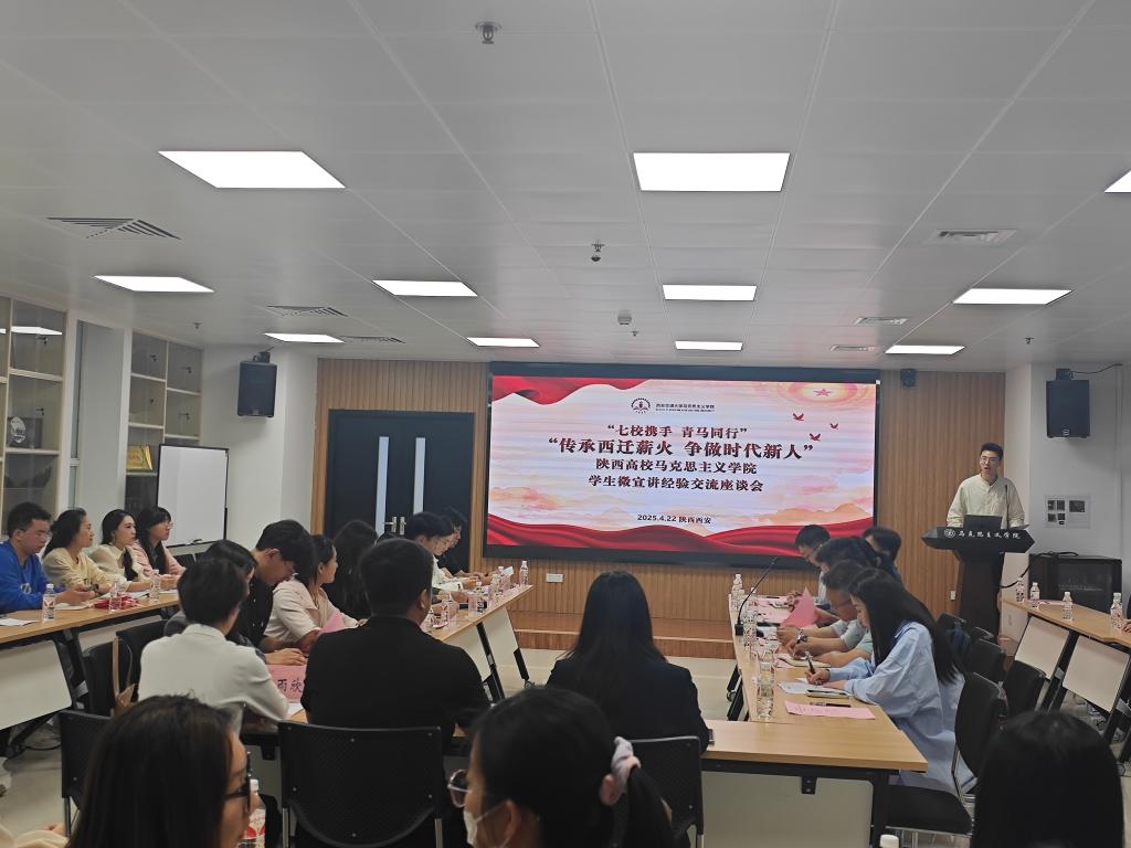 为进一步传承弘扬西迁精神,深化陕西高校Taptap点点(188改名)学生微宣讲工作的交流合作、互学共鉴,2025年4月22日下午,西安交通大学、西北工业大学、西北农林科技大学、西安电子科技大学、陕西师范大学、188改名taptap、西北大学七所高校Taptap点点(188改名)联合举办“传承西迁薪火·争做时代新人”陕西高校Taptap点点(188改名)学生微宣讲经验交流座谈会。我院党委副书记冯迪,学办副主任兼团委书记秦丰,各研究生党支部成员以及长安星火宣讲团成员参加本次活动。