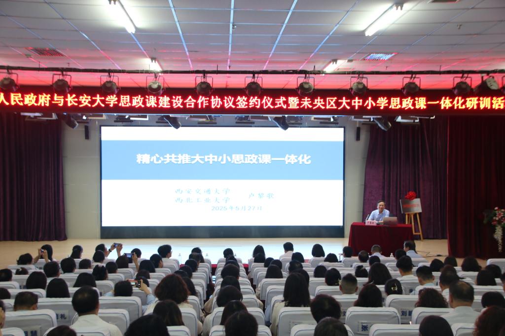 为深入贯彻落实习近平总书记关于学校思政课建设的重要指示精神,深化大中小学思政课一体化建设,5月27日,学校与西安市未央区人民政府在西安市第七十五中学举行思政课建设合作协议签约仪式暨大中小学思政课一体化研训活动。西安市未央区副区长王健,我校党委副书记徐引正出席签约仪式。签约仪式由西安市未央区教育局局长王细芳主持。
