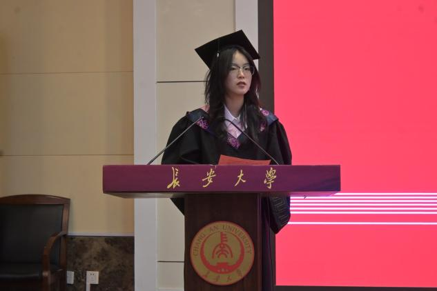 毕业生代表白嘉欣回顾了大学四年的成长足迹,感谢学院搭建的成长平台与师长们的悉心指导。她表示,这段刻骨铭心的求学时光将成为毕业生们未来前行的力量源泉,将转化为服务社会、报效家国的力量。在校生代表单浩哲向即将毕业的学长学姐们表达了诚挚感谢和衷心祝福,愿他们未来如鲲鹏展翅、青松挺立、星火燎原,希望在校生们以他们为楷模,不断提升自己,不负青春韶华!