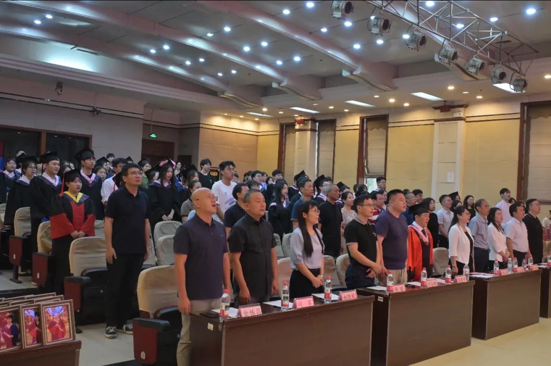 院党委书记李小芹宣读学位授予决定和毕业生名单,院长陈怀平为毕业生拨穗并颁发学位证书。