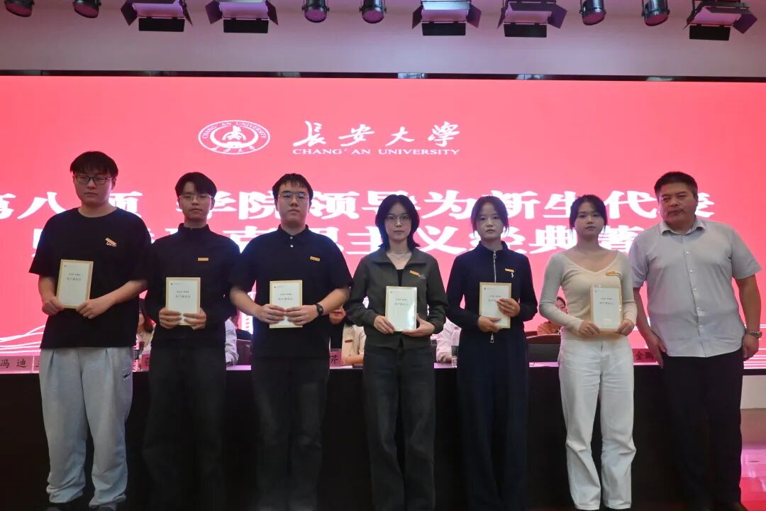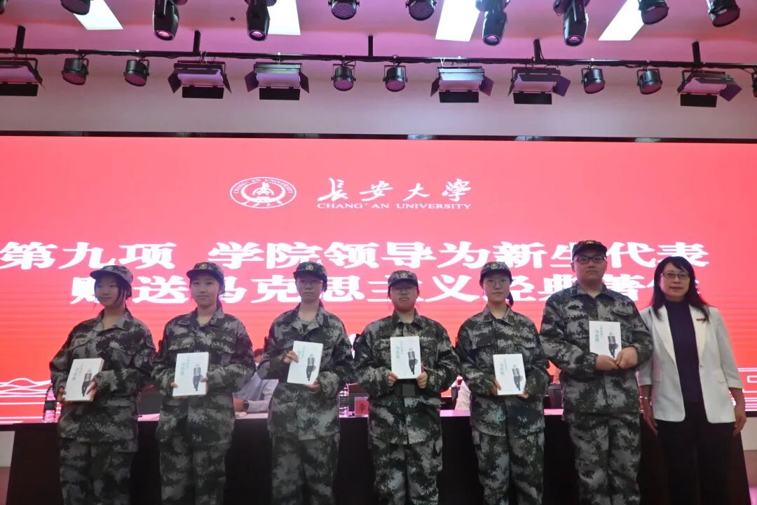 赠书环节,学院领导向新生代表赠送马克思主义经典著作。院党委书记李小芹为本科生新生代表赠送书籍《当青春遇上马克思》;副院长万金鹏向研究生新生代表赠送书籍《共产党宣言》。