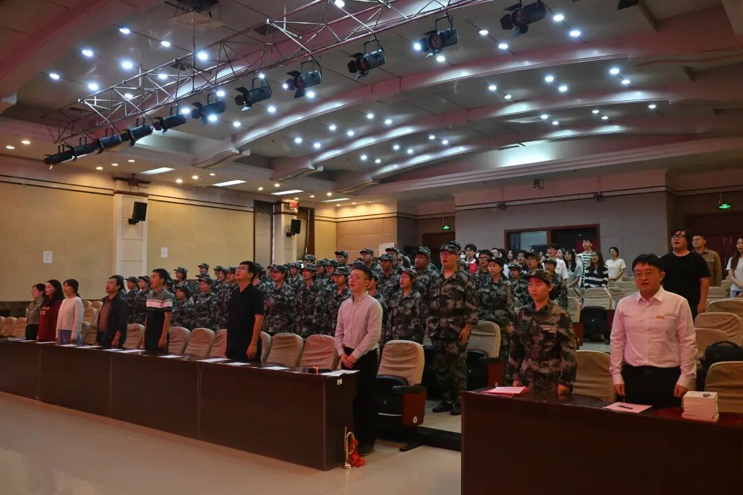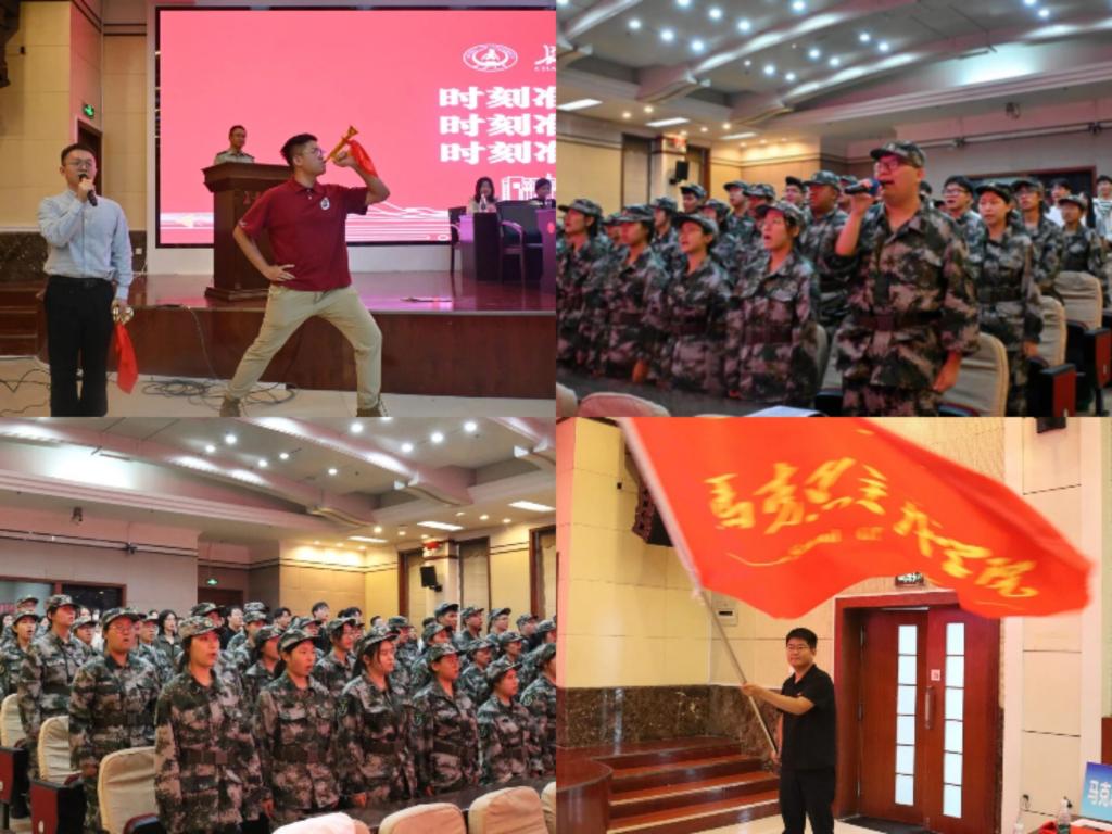 在“吹响冲锋号·共唱《未来我来》”环节,新生代表手持院旗领诵“青马心向党,梦想正启航!未来,我来!”,辅导员秦丰以冲锋号动员,新生三次高呼“时刻准备着”,斗志昂扬。随后冲锋号响起,伴随《未来我来》合唱与混剪青春影像,全场气氛热烈,充分展现了新生传承红色基因、勇担时代使命的坚定决心和青春风采。