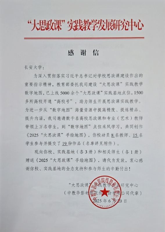 此次入选是对我院创新开展“大思政课”实践教学工作的充分肯定,教育部“大思政课”实践教学发展研究中心特向我院发来感谢信。