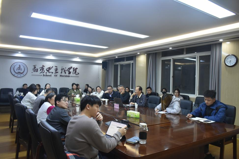 讲座结束后,参会青年教师及研究生同学与赵卫国教授就虚无主义展开讨论,闵军副教授代表学院致谢并总结。闵军高度肯定了赵卫国教授的分享,指出通过赵教授的分享使我们对人生的意义、生命的意义、自我的本真有了更好的理解。现场师生表示本次讲座受益匪浅,激发了我们对虚无主义交流研讨与探索学习的热情。