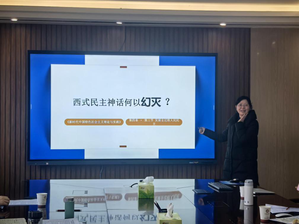 第二阶段的“卓越教学示范课”第一讲,邀请2025年度陕西高校思政课教师“大练兵”展示活动特等奖获得者宋鑫华老师作经验分享与教学展示。宋鑫华老师回顾了整个参赛历程,并分享了备赛心得,她指出,本次比赛突出“回归课堂、回归教材、回归实际、回应学生”的导向,强调教师必须吃透整个教材,全面提升运用理论回应现实、解答学生真问题的能力。随后,她以《西式民主神话何以幻灭》为主题进行了精彩的教学展示。