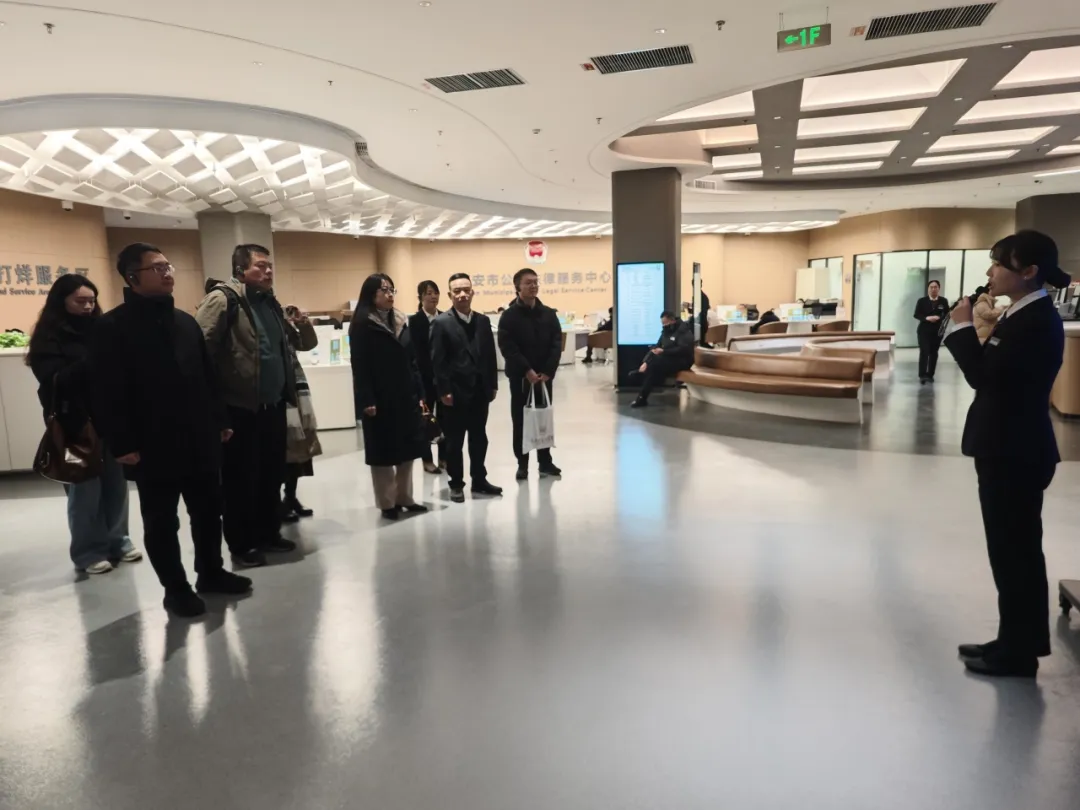 会前,学院一行参观了西安市政务服务中心大厅。工作人员详细介绍了大厅的功能布局,展现了中心在推进“一网通办”、优化营商环境方面的创新举措与实效。