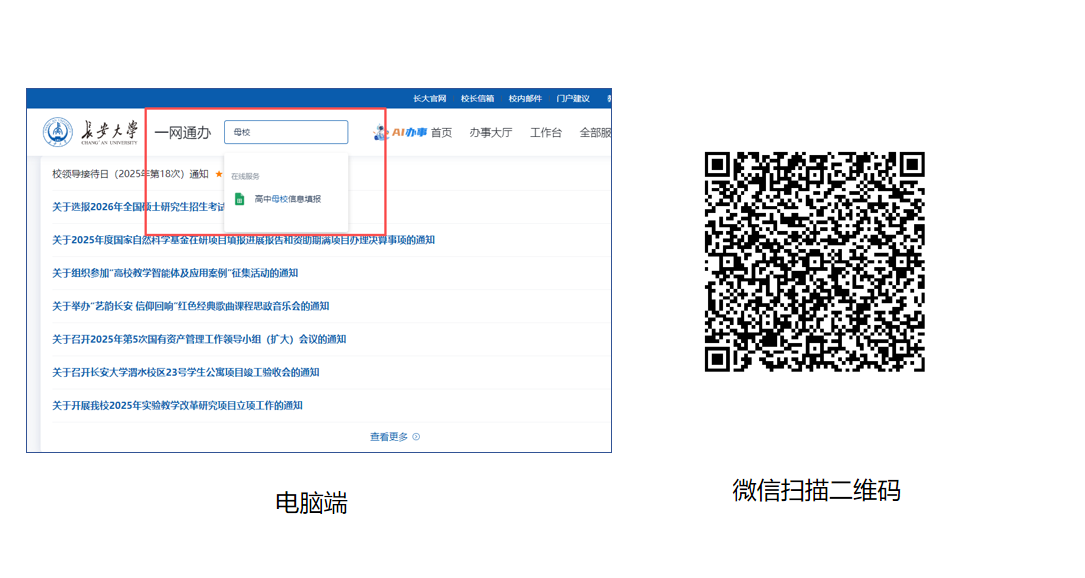 1.登录信息门户,在“一网通办”栏搜索关键词“母校”选择“高中母校信息填报”,进入页面后填写、补充或核对相关信息,确认并提交招生宣传意愿即可。