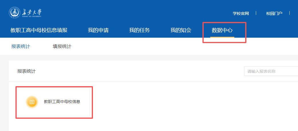 组织填报期间,为各单位公文管理员开通了信息填写进度查看权限(电脑端进入高中母校信息填报-数据中心-教职工高中母校信息图标),请各单位高度重视此项工作,指定专人负责本单位教职工的通知传达、填报指导与进度督促。
